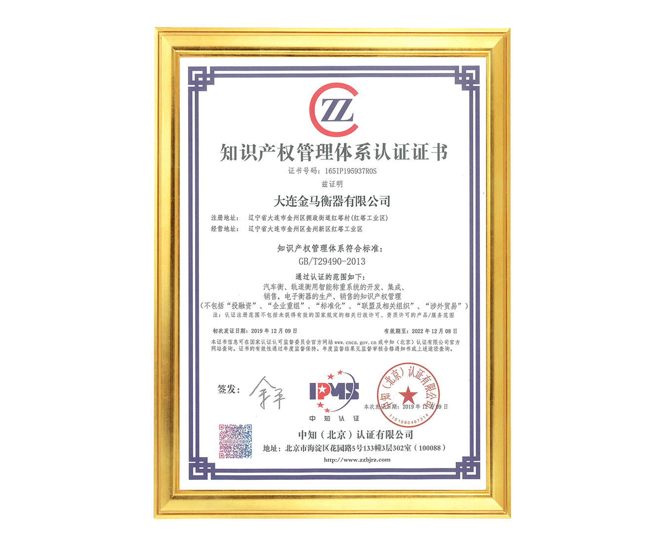 知識(shí)產(chǎn)權(quán)管理體系認(rèn)證證書(貫標(biāo))